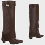 Las botas Luna fueron diseñadas para quienes buscan un estilo impactante sin sacrificar la comodidad. Con un diseño moderno y escultural, estas botas destacan por su caña ancha y fluida, creando un efecto sofisticado y audaz, perfecto para realzar cualquier look de otoño/invierno. La suave piel ofrece una sensación de lujo, mientras que la puntera cónica garantiza una silueta elegante y alargada. El detalle metálico minimalista en la parte superior aporta un brillo sutil, reforzando la inspiración contemporánea del modelo.