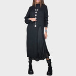 Combinación de Dos Piezas: un jersey largo de punto con un vestido fluido debajo, perfecto para un look impecable y sin esfuerzo. Versátil, puedes usarlo junto o por separado, multiplicando las combinaciones.