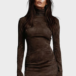 Aurea | Vestido Corto de Ante con Cuello Alto
