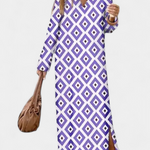 Brisa Vestido Largo Geométrico con Abertura y Escote en V