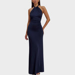 • Elegancia Sofisticada - Escote halter y volantes delanteros que irradian estilo refinado, mientras la espalda escotada aporta un aire sensual.