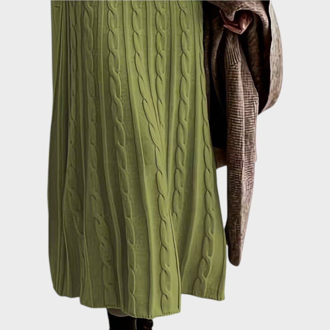 Sumérgete en la elegancia atemporal con Vanessa, el vestido largo de punto diseñado para que cada día sea una experiencia sofisticada y relajada. Confeccionado con una lujosa textura de punto, este vestido se adapta maravillosamente al cuerpo, ofreciendo una suave elasticidad y comodidad durante todo el día. Su silueta larga y femenina estiliza la figura, y la tela suave proporciona calidez sin volumen, perfecto para momentos acogedores, salidas con estilo y todo lo demás.