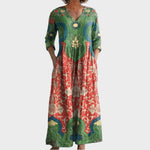 El vestido Benedicta aporta elegancia natural a tu armario. Con su rico estampado inspirado en tapices, corte fluido y largo hasta los tobillos, Benedicta favorece cualquier silueta, evocando gracia y nostalgia. Su suave tejido de algodón y poliéster te mantiene fresca y cómoda, mientras que el escote en V y las mangas largas realzan tu look con una sutil sofisticación. Ya sea para un paseo por el jardín, un brunch o una excursión, Benedicta te acompañará con elegancia temporada tras temporada.