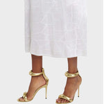 Las sandalias Alda son la expresión perfecta de la elegancia moderna. Con un acabado metálico dorado y tiras acolchadas que envuelven el tobillo y la parte delantera del pie, este modelo añade un toque glamuroso a cualquier look. El discreto cierre en la parte trasera garantiza la practicidad sin comprometer el estilo. Ideal para ocasiones especiales o para realzar los looks más minimalistas.