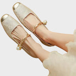 Experimenta la combinación perfecta de estilo y comodidad con estes zapatos. Su silueta de inspiración vintage se reinventa con detalles exquisitos, como la tira trenzada adornada con perlas y la puntera metálica brillante. Un tacón sutilmente brillante añade un delicado toque de luminosidad a cada paso, perfecto para looks sofisticados de diario o para ocasiones especiales que requieren algo más.
