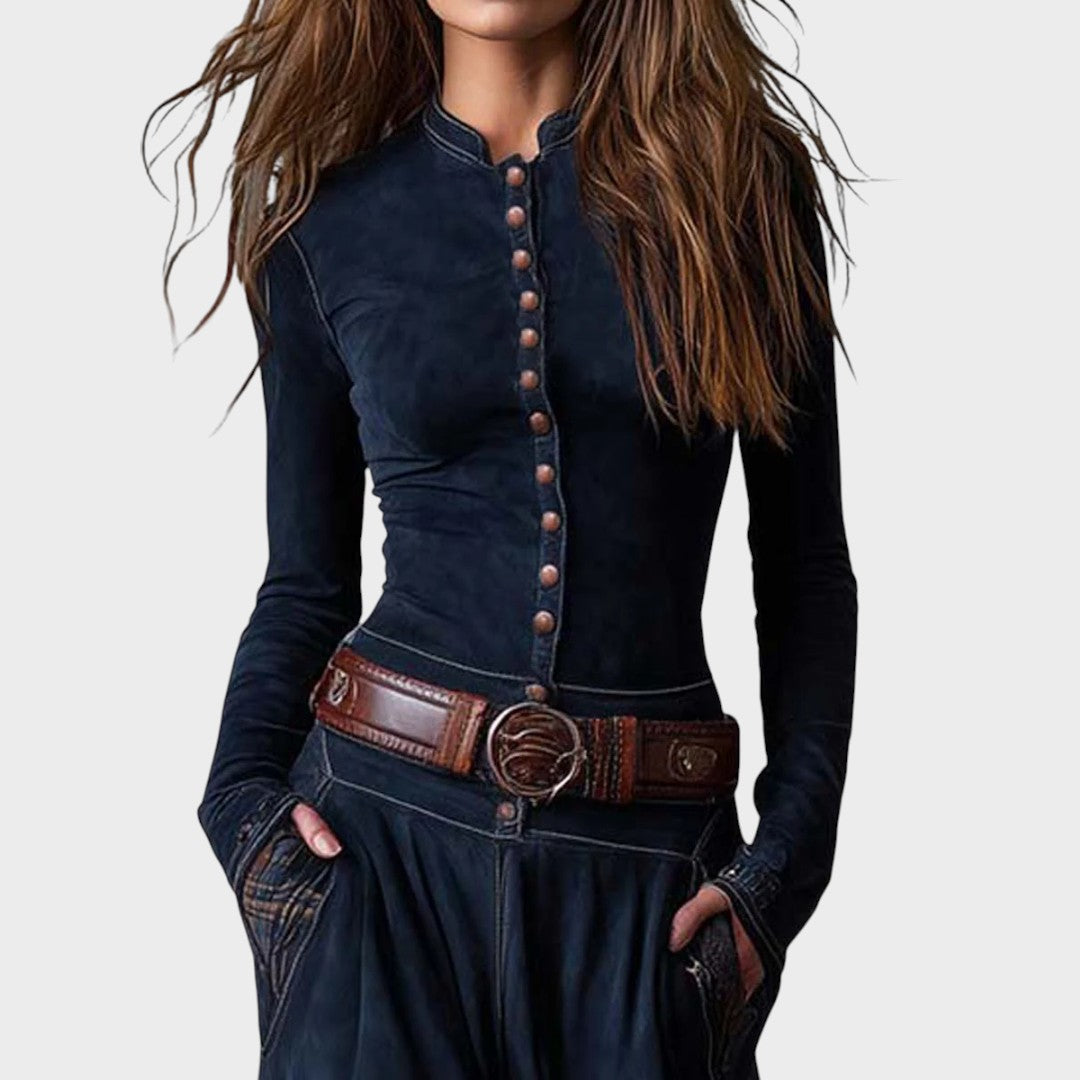 El vestido Ivana combina ante ecológico azul marino, paneles de cuadros escoceses artesanales y un cinturón muy favorecedor que moldea la cintura con una sofisticación sin esfuerzo. El corpiño estructurado, los detalles de botones metálicos y la falda fluida crean un look atrevido pero elegante, perfecto para las mujeres que adoran la artesanía atemporal con un toque moderno y seguro.